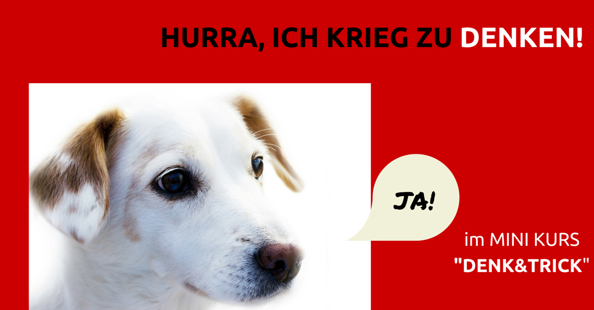 willst du wissen, welche art geistiger auslastung deinem hund am meisten entspricht? und willst du sicher stellen, dass dein hund auch wirklich genug denksport bekommt? mit dem kostenlosen (!) 5 tägigen mini-kurs "denk & trick" kannst du das! einfach hier eintragen und mitmachen.