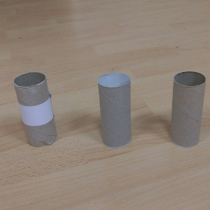 damit dein hund „die kürzere ziehen“ kann, brauchst du 3 klopapier-rollen, von denen du eine auf die hälfte kürzt.