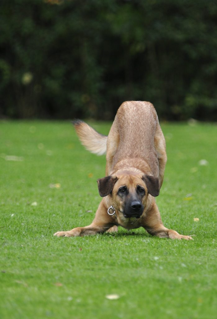 da wir menschen ja erbärmlich langsam rennen im vergleich zum hund, besteht ein bewegungsspiel zwischen mensch und hund mehr aus der körpersprachlichen spielaufforderung, kurzen laufstrecken, vielen stopps und vielen haken.