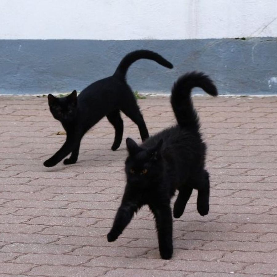 und nochmal zwei aufgelesene kätzchen, die schwestern marimga (langhaarig) und merengue (kurzhaarig) zogen 2021 bei uns ein und vervollständigen das sextett. sie sind sehr verschmust und menschenbezogen - was sie nicht daran hindert, sich die nächte draußen um die ohren zu schlagen und kräftig zu mausen. weniger freude macht es, wenn sie mir die erlegten mäuse stolz im hof präsentieren oder die extra-langhaarige marimba extra viele zecken und klettenkügelchen im fell nachhause bringt.